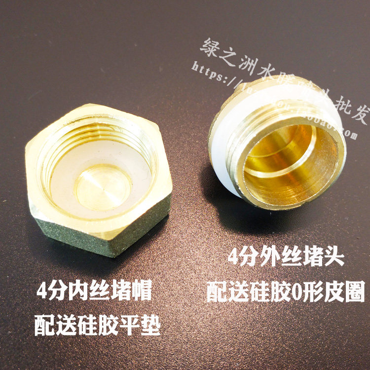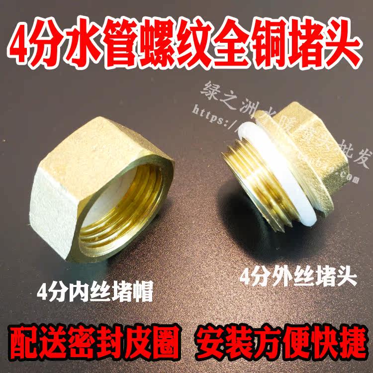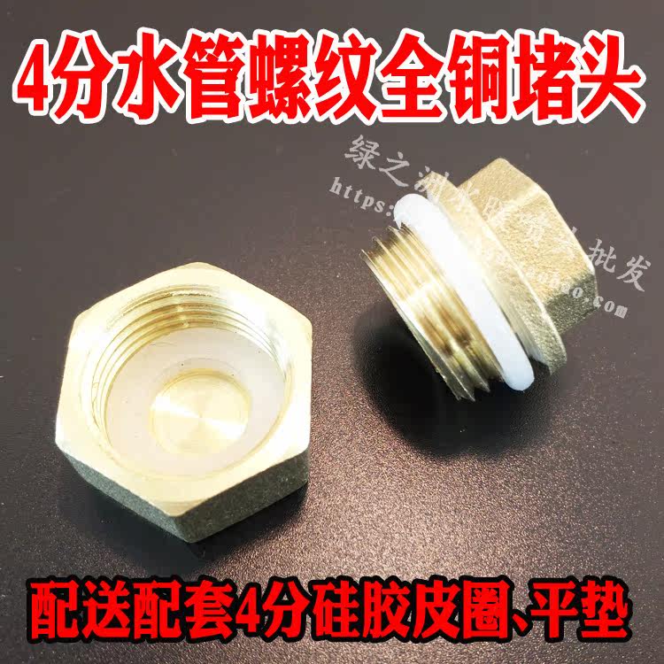 Brass plug water pipe plug thread buckle thread plug cap copper household inner hole outer wire plug head 4 points 1 2 with gasket