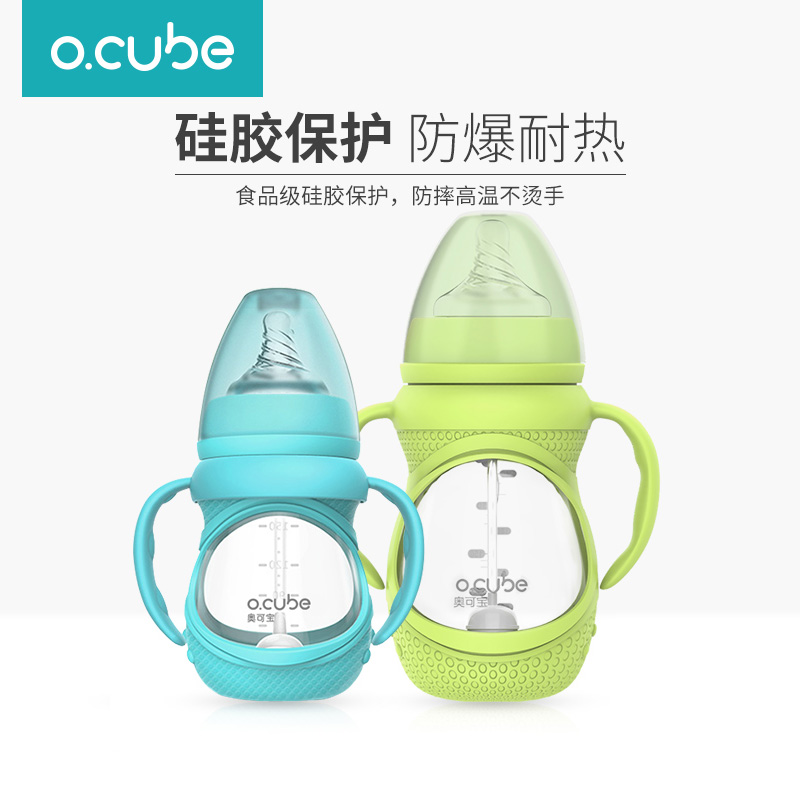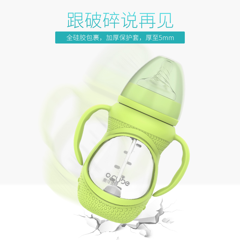Aokebao newborn baby bottle glass newborn baby straw drinking water with handle gravity ball wide caliber anti-fall