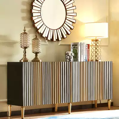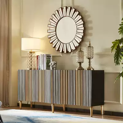 Neoclassical porch cabinet light luxury solid wood sideboard Nordic style living room storage cabinet shoe cabinet Villa decoration cabinet