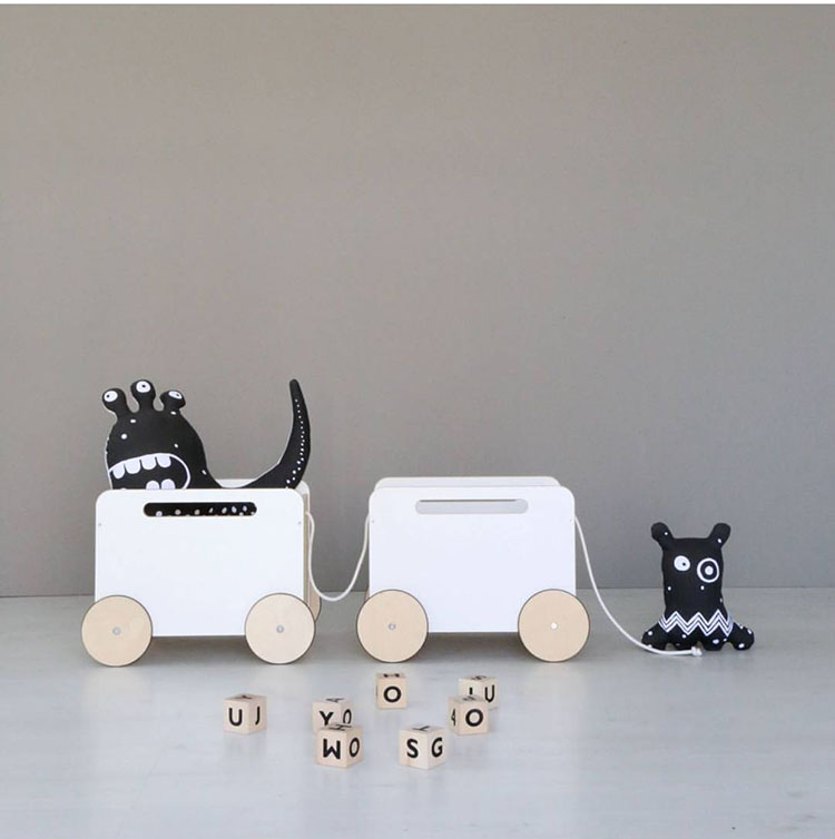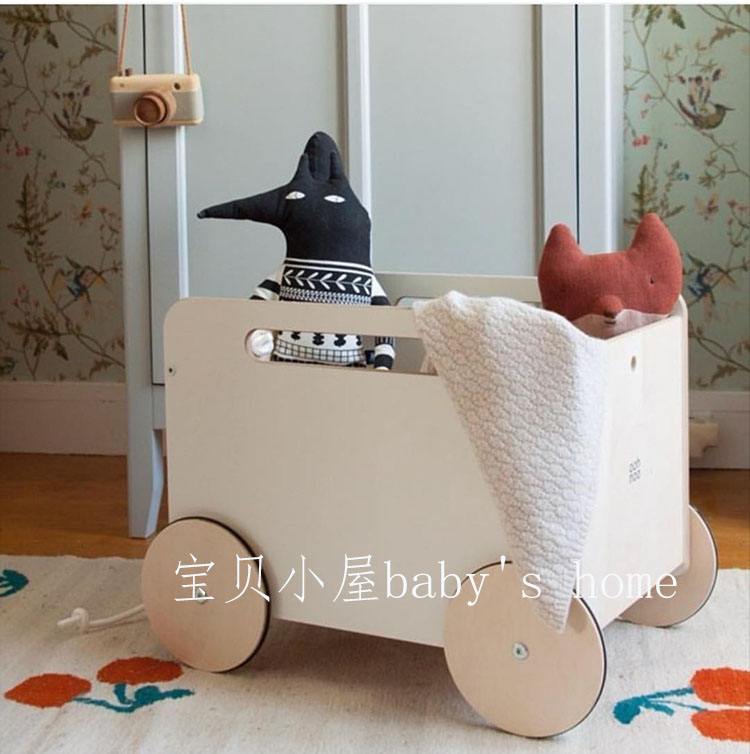 ins Nordic new children's house wooden moon small cart Photography baby pushback toy containing pull car