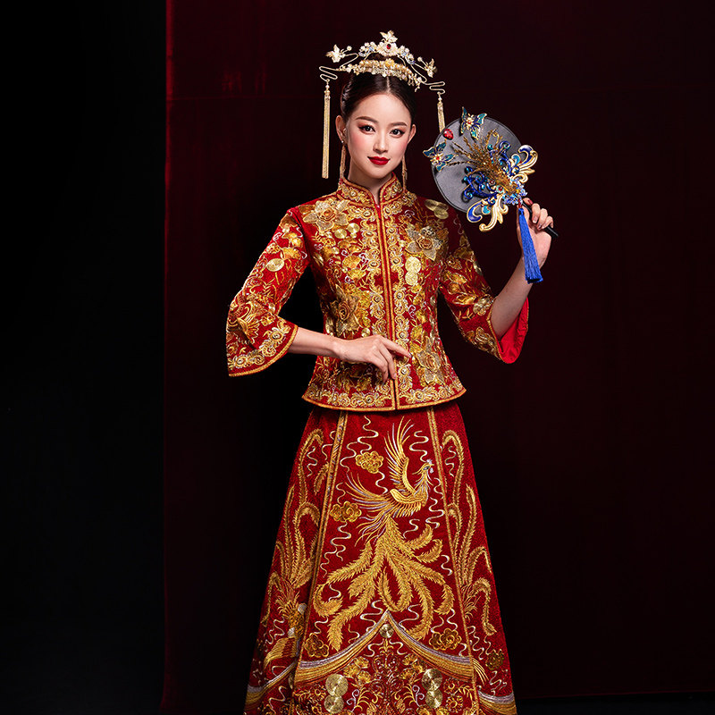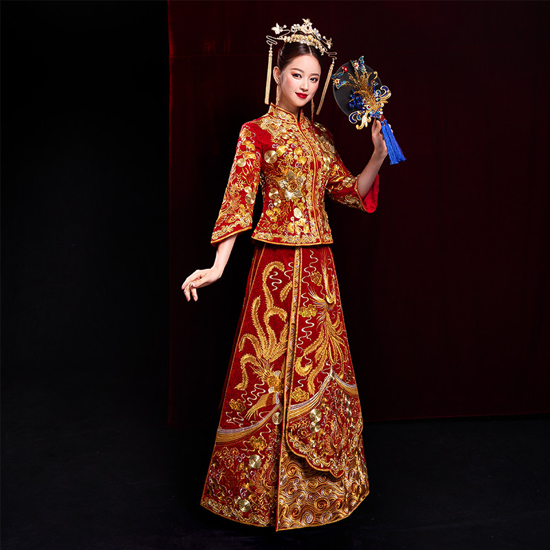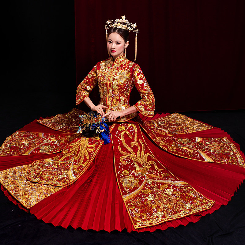 Show Wo Costume Bride 2022 new Wo Show Costume Bride Out of the Ancient Wedding Suit Cocky Crown of the Pineong Hung Bride
