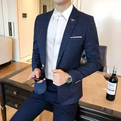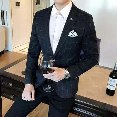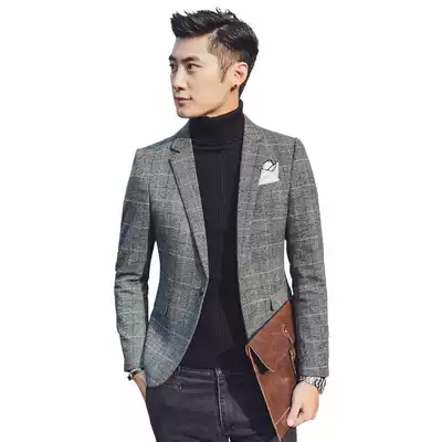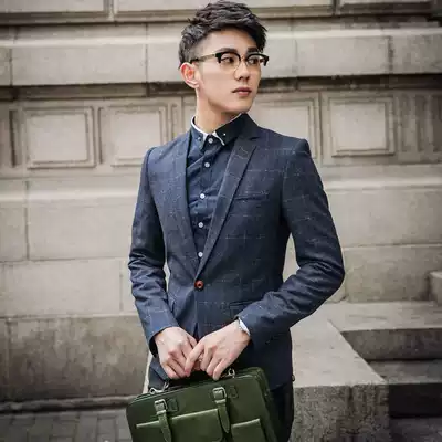Casual small suit men's jacket slim British summer Korean version of the single-piece suit men's woolen youth tide top plaid
