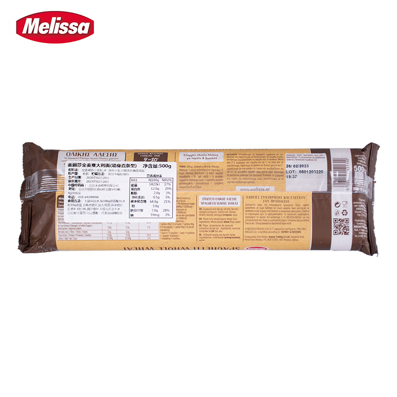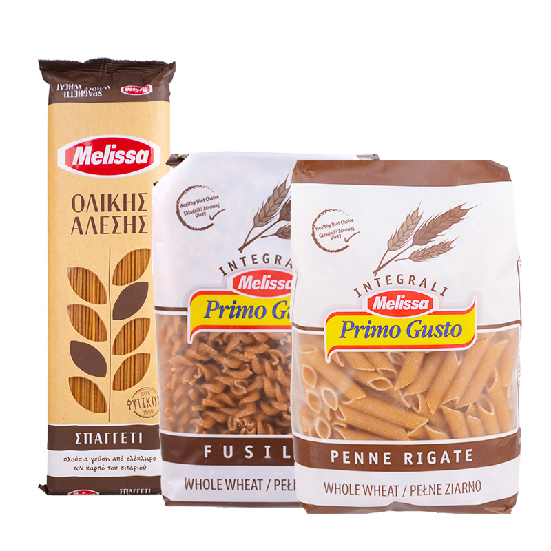 Melissa imported pasta whole wheat pasta full cereal noodles 500g * 3 packs of household discount set