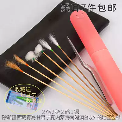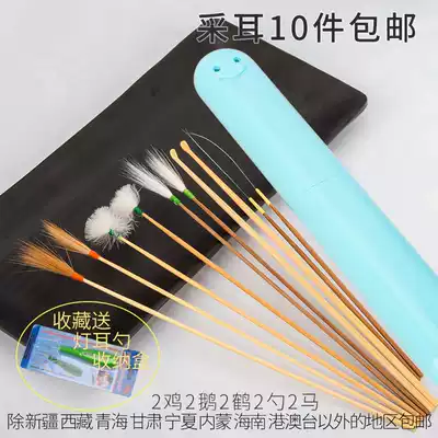 Ear picking combination bamboo handle goose hair stick horse Chicken hair stick cleaning around ear digging tool set ear spoon