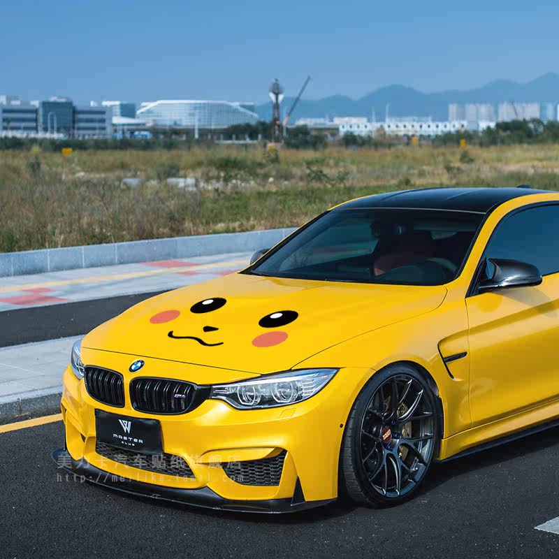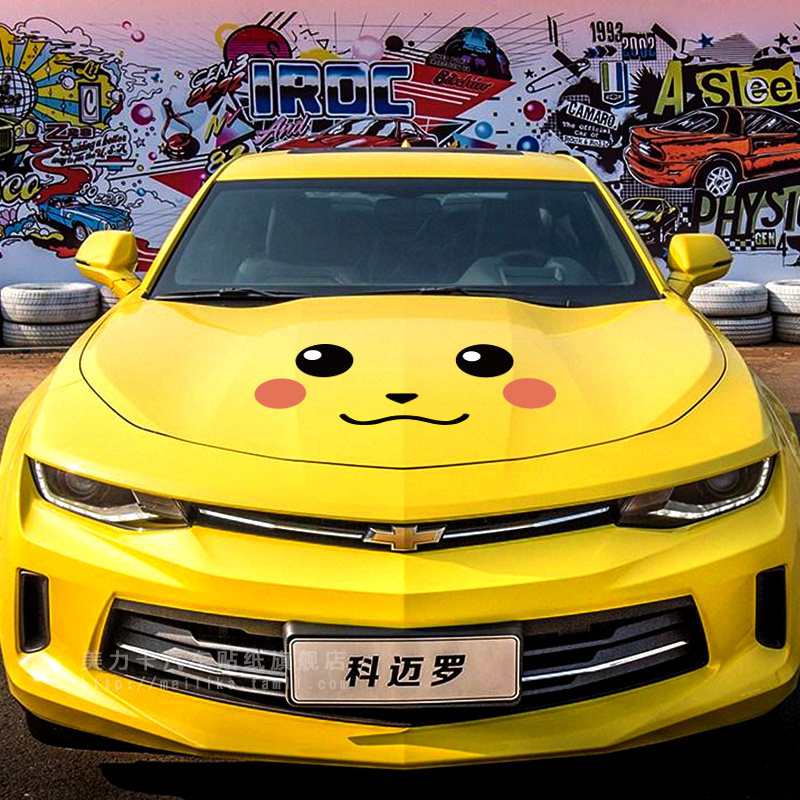 Pikachu car stickers with smiley face engine cover personality cartoon car stickers cover scratches car decoration sticker
