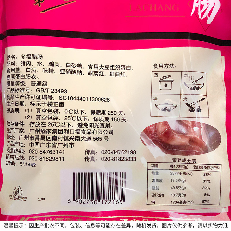 Guangzhou wine home with 300g bagged Guangdong-style sausage wine taste autumn breeze Guangdong sausage air-dried sausage