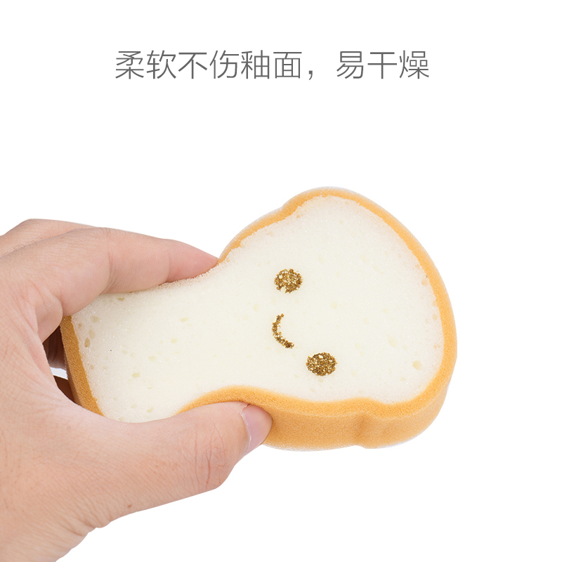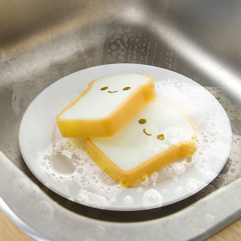 Japanese creative cartoon toast sponge wipe cute bread type cleaning cloth kitchen dish brush 2 pieces pack