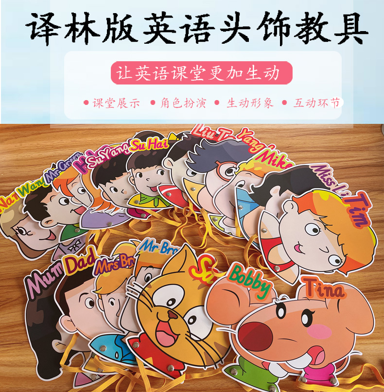 Su Teach Edition Oxford Translation Lin Prints Primary School English Characters Headwear Audition Classroom Performance Lesson Mask Teaching Aids