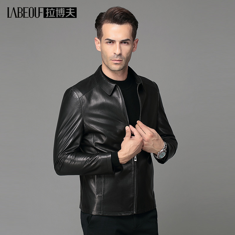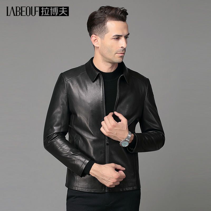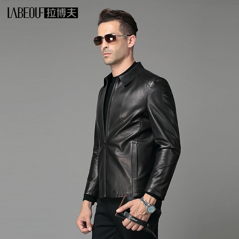 Rabov leather men's goat leather jacket business leisure leather men short men middle-aged coat