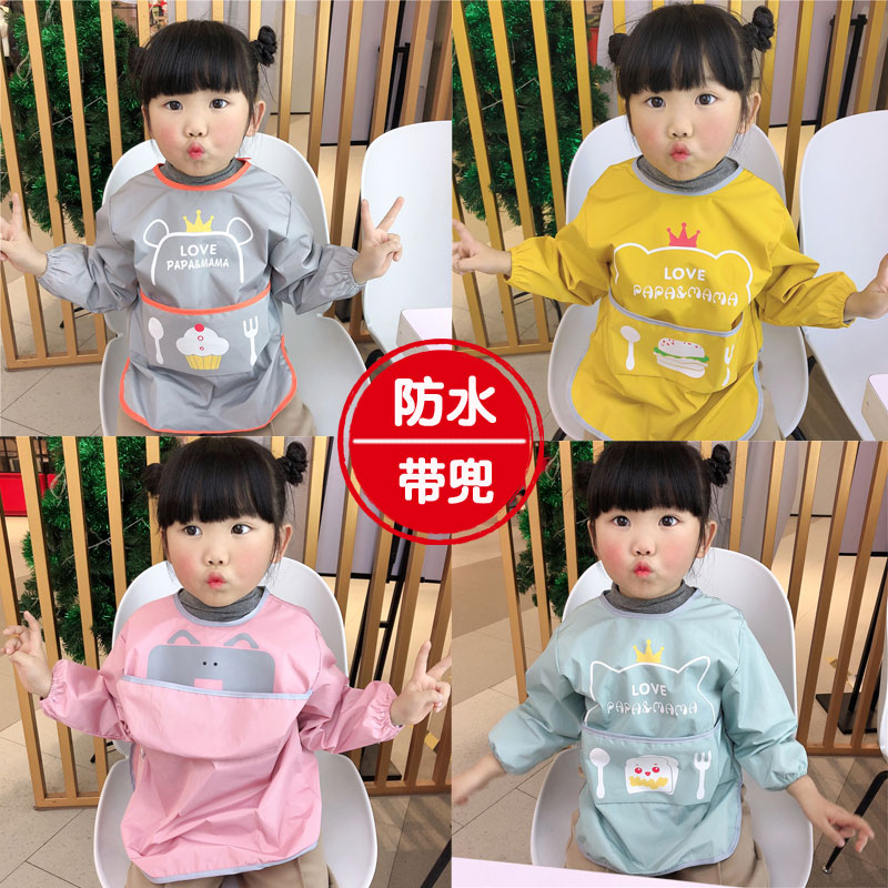 Baby eating coveralls boys and girls around the dinner clothes children's full body waterproof baby long-sleeved anti-dirty bib reverse dressing