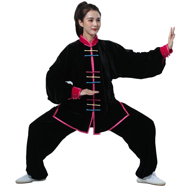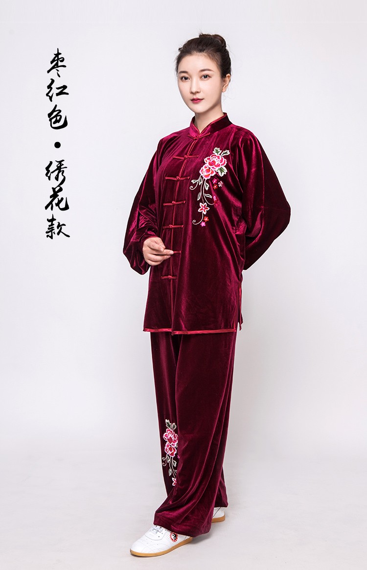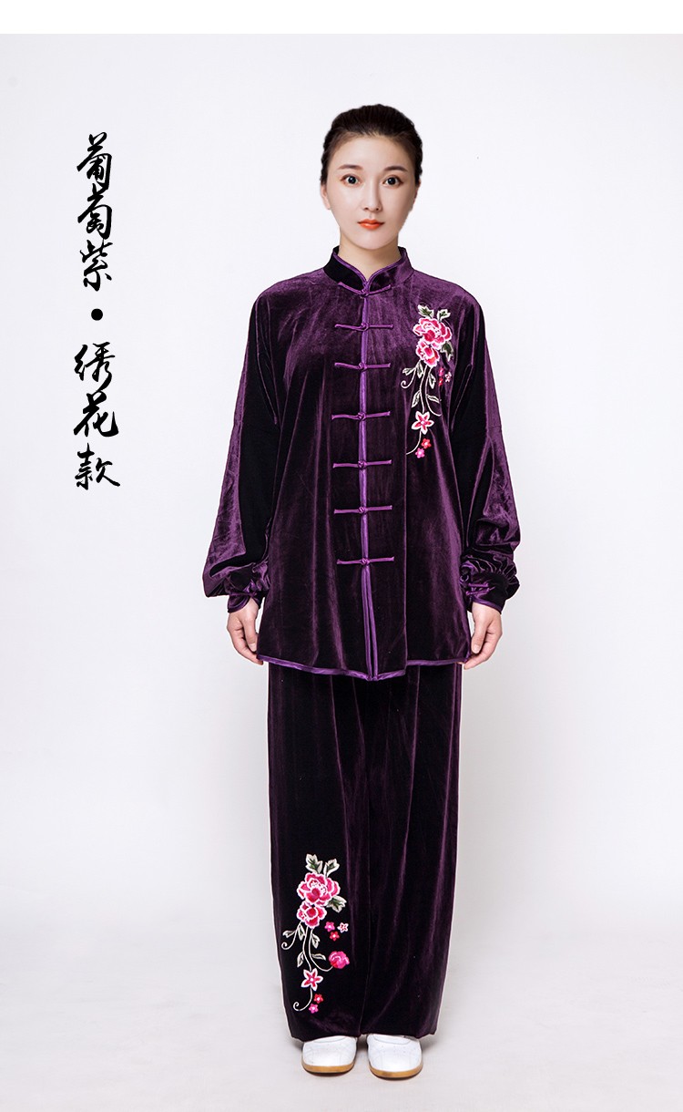 New Tai Chi Suit Women's Embroidery Autumn Winter Thickening practice Gongfu Golden Velvet Infumery for Old Age Performance Wushu Ssuit