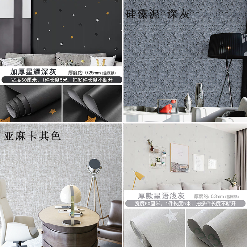 Advanced Grey Wallpaper Self-Glued Tabletop Wardrobe Sub Furniture Renovated Stickers Waterproof Pvc Background Wall Wallpaper Bedroom