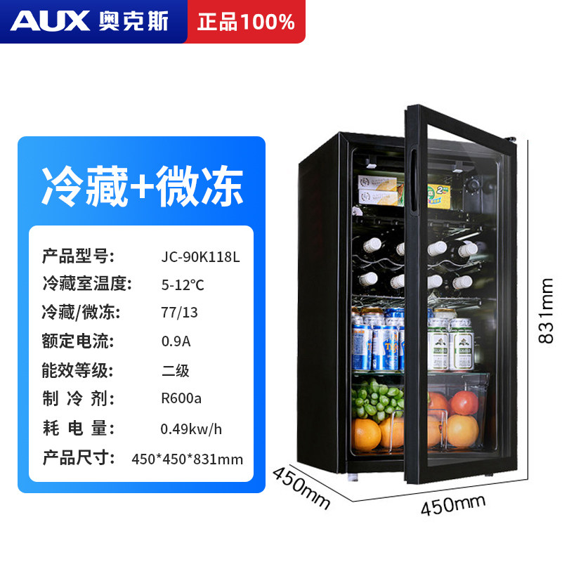 AUX ice bar Household small wine cabinet Tea refrigerator fresh cabinet Office single door refrigerator Living room