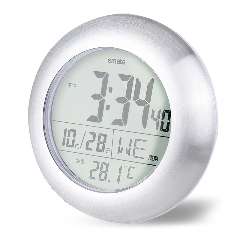 Bathroom waterproof suction cup wall clock metal enclosure kitchen wall clock large screen display digital mute electronic watch