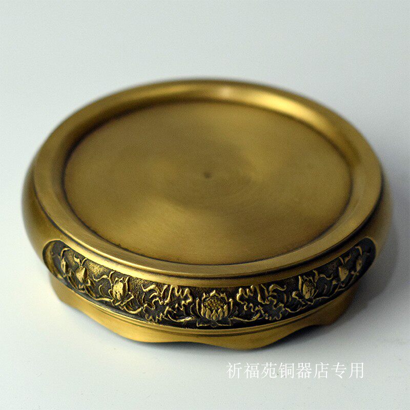 Pray Fu Court Bronze Base Retro Brass Small Round Make Old Swing Piece Lotus Lotus Flower Boutique Living Room Tea Set Lettering