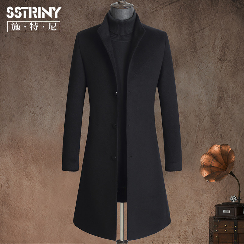 Steney men's double-sided woolen thickened cashmere coat mid-length woolen coat stand collar woolen coat woolen coat