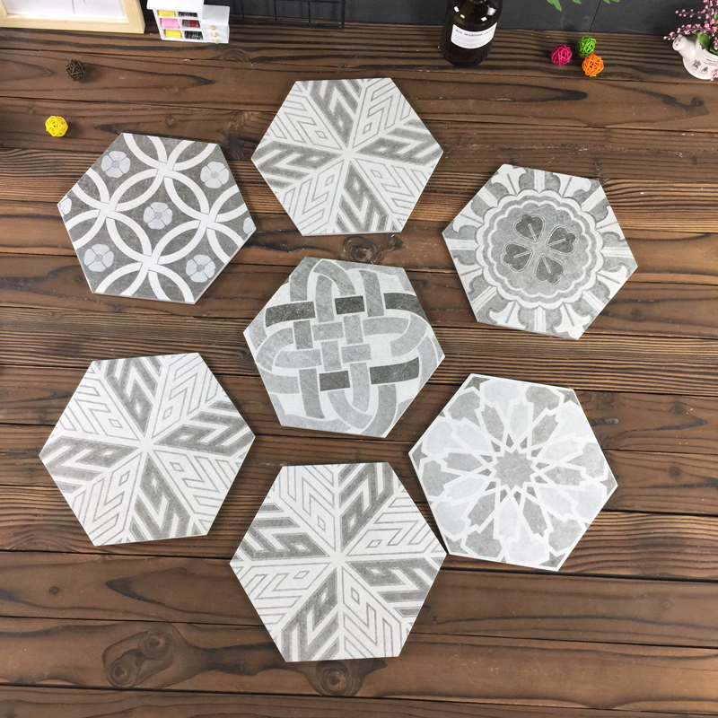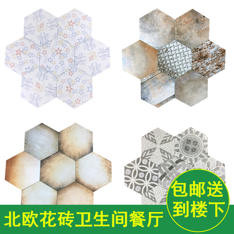 Nordic IKEA light Hexagonal brick minimalist dining room Kitchen Guard Balcony Living Room Tile 6-sided black-and-white grey wall tiles