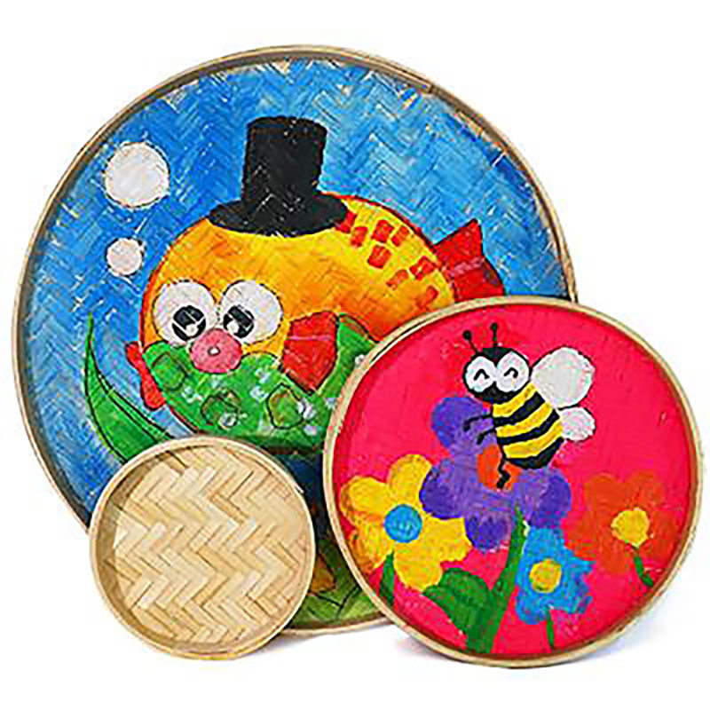 Kindergarten Corridor Hanging accessories Decorative Bamboo dustpan Basket Fine Art Room Painting Creative Works Hanging Accessories Bamboo Disc DIY