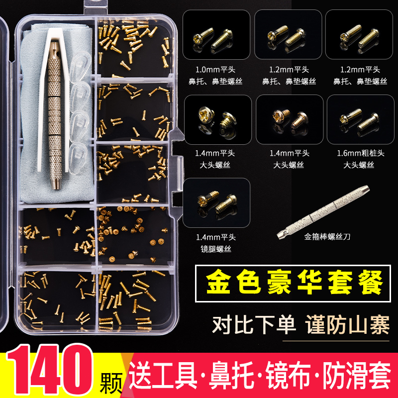 Glasses screw package (upgraded version) glasses screw set Golden Screw set (2 pairs of airbags nose, golden hoop, screwdriver, send a full set of tools) nut set (basic nose pad