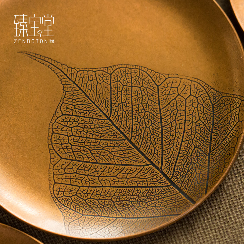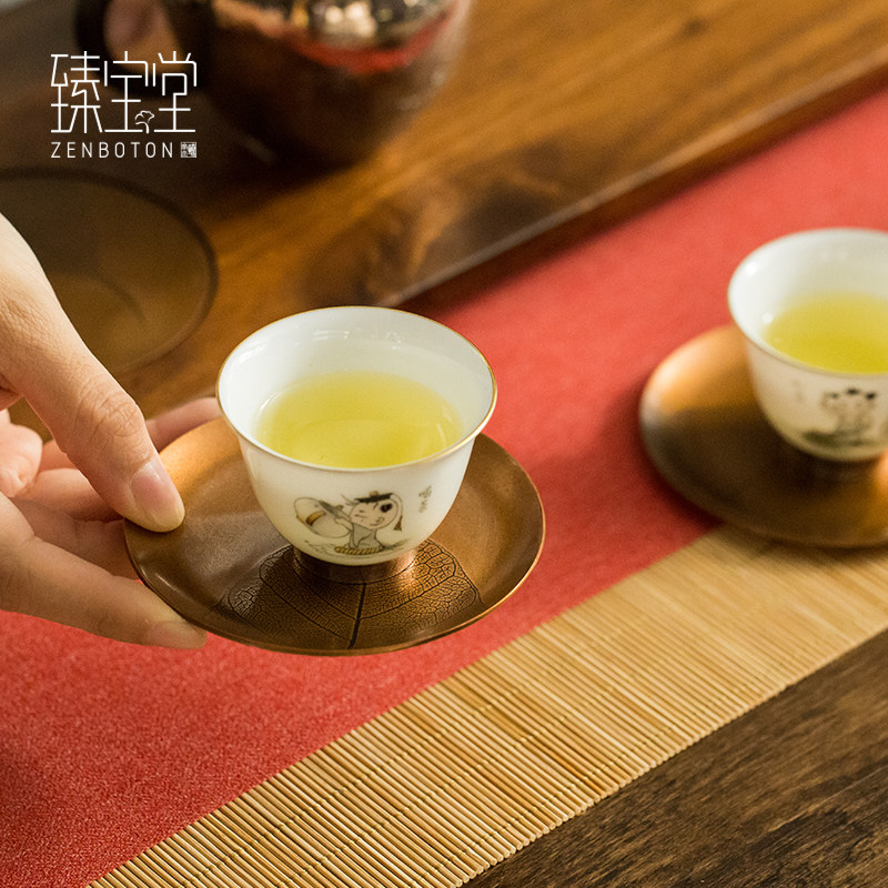 Zhenbaotang tea tray pure copper hand-carved cup holder round flat large heat insulation pad Kung Fu tea copper tea set accessories