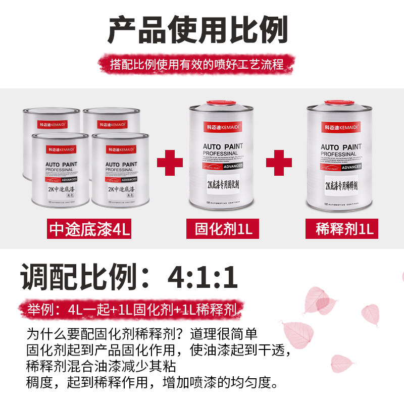 Cemreo Di 2K two-component automotive intermediate primer Curing agent set Automotive paint single-component primer 2K gray primer