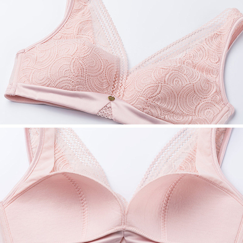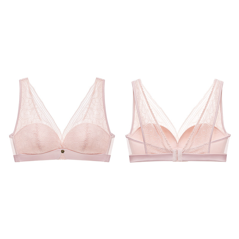 (Large cup thin section)Triangle cup rimless bra French lace underwear women's gathering bra Lan Zhuo Li