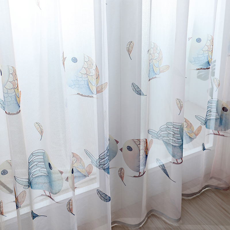 2019 new love bird semi-blackout fabric finished curtains living room bedroom Nordic wind floor-to-ceiling window floating curtains