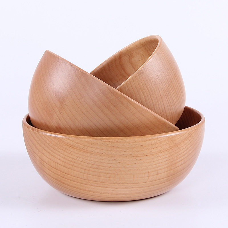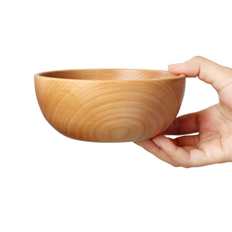 Japanese Wood unpainted tasteless children's hot wooden bowl Nordic Beech rice bowl household noodle bowl creative tableware