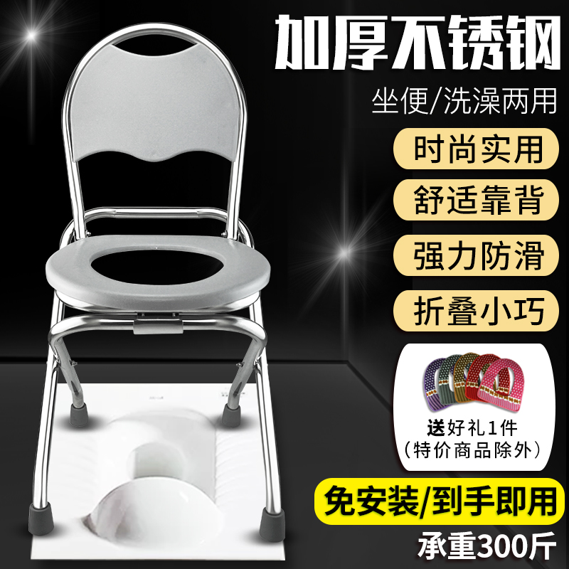 Pregnant women toilet toilet chair folding squat chair non-slip portable mobile toilet home stool stool