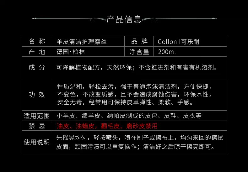 Imported lambskin leather bag cleaner Luxury leather goods sheepskin leather shoes decontamination cleaning care agent