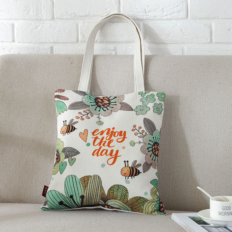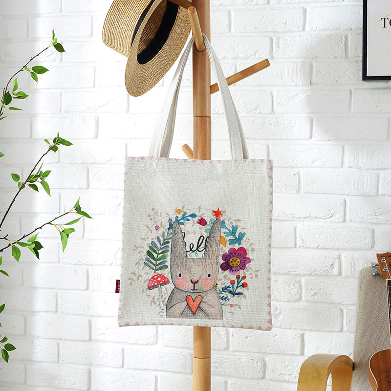 Nordic Ins Wind Cartoon Printed Cloth Art Cotton Hemp Shopping Bag Closeout Bag Single Shoulder Bag can come and set to do