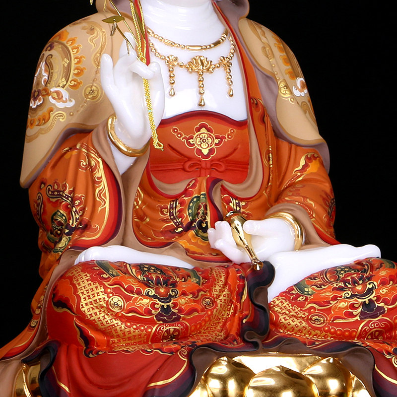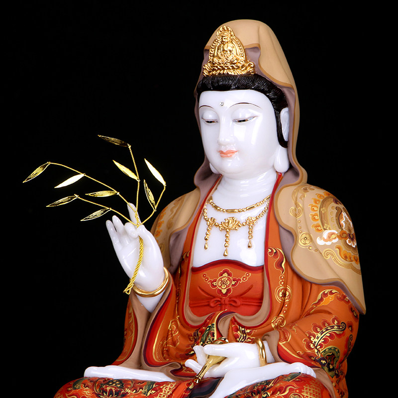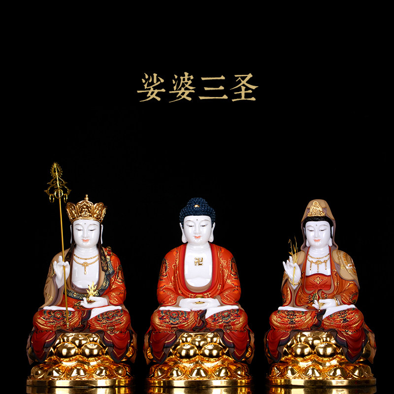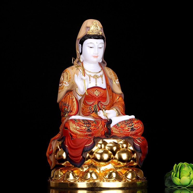White marble inlaid gold Guanyin Buddha statue home South China Sea Guanyin Bodhisattva Saha three holy living room for Buddha ornaments