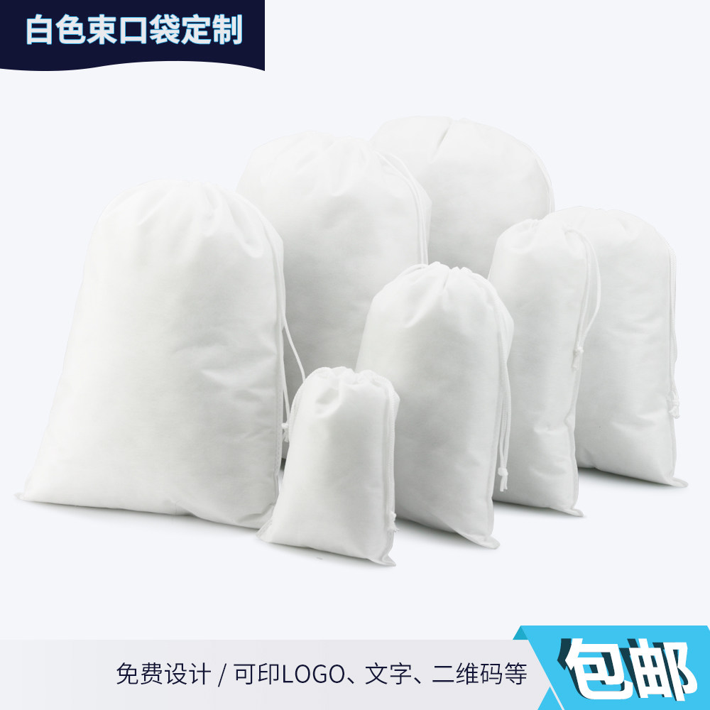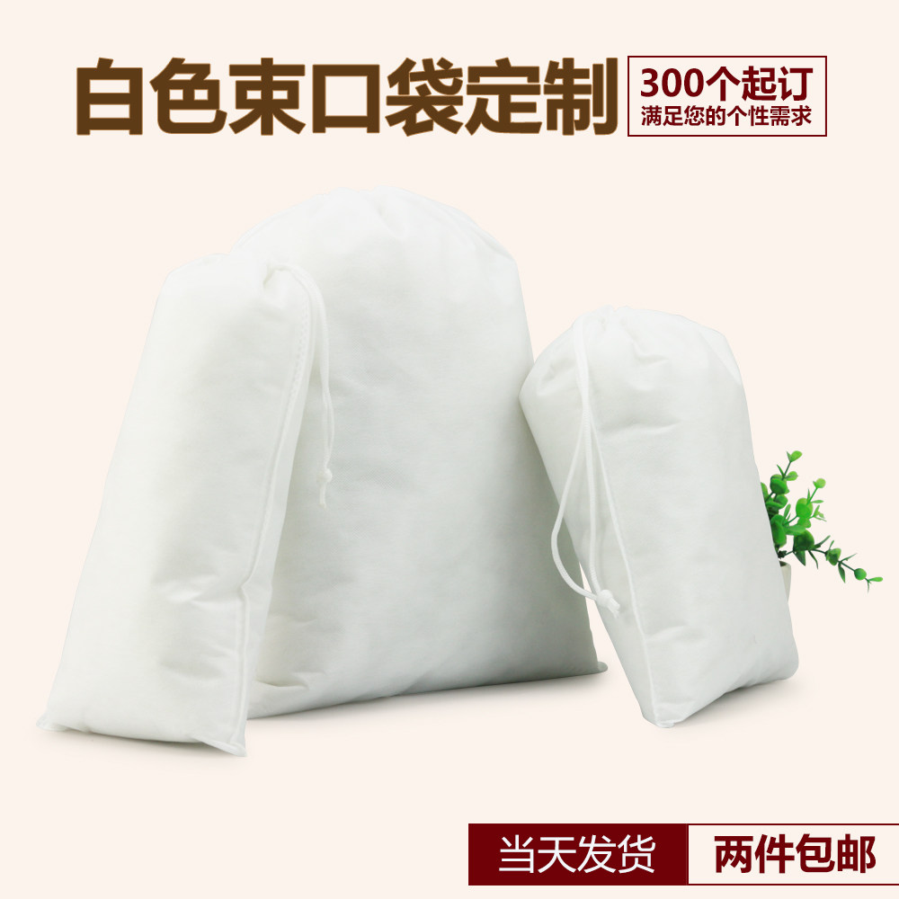 White Unwoven Bunches Pocket Double Pumping Rope Travel Containing Debris Toy Finishing Dust Bag Print Custom LOGO