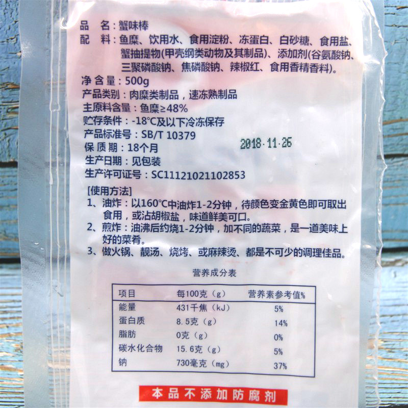Celiac drinking water edible starch frozen protein white granulated sugar edible salt crab extract (crustacean and product) additives (sodium glutamate trimester sodium pyrophosphate spicy