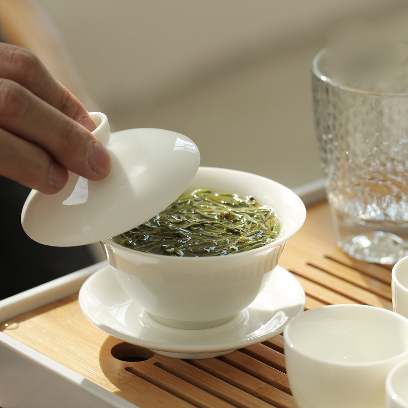 Cytoplasmic charm Yuxuan Wen such as Chunxi pure white lid bowl small home Biejade ink rhyming with lotus flower lid bowl fresh Joran