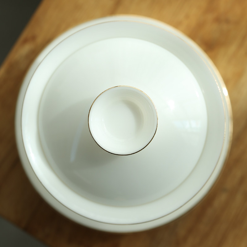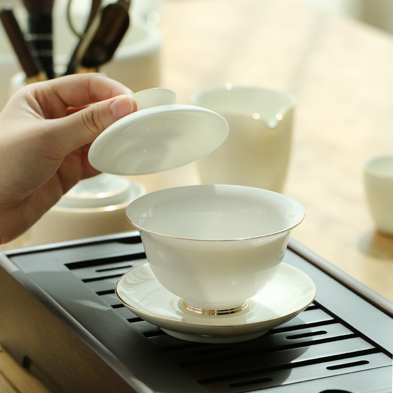 Shang Fang Sketch Gold Cover Bowl Tea Cup Kung Fu Tea Tea Defied White Porcelain Handmade Large single Three-only cover Bowl Bubble Tea Bowl
