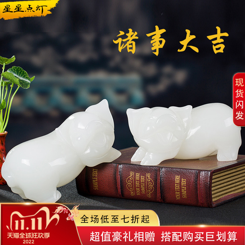 A pair of jade pigs (small size about 15cm) A pair of jade pigs (about 18cm in medium size) A pair of jade pigs (about 16cm in pink jade) A pair of jade pigs (about 17cm in pink jade) A pair of jade pigs