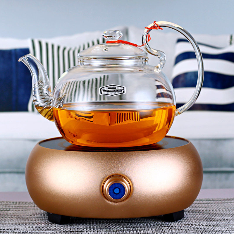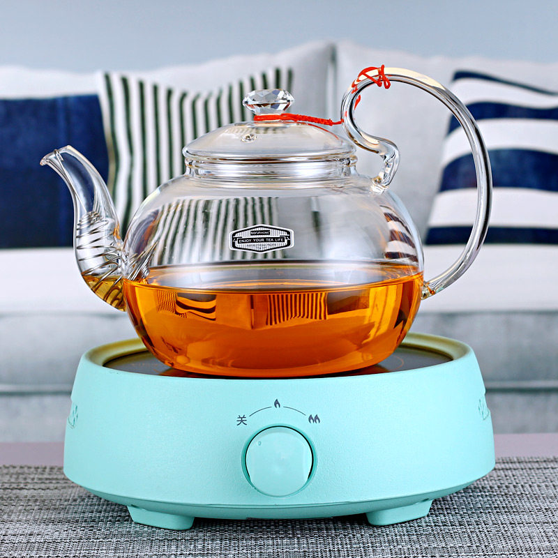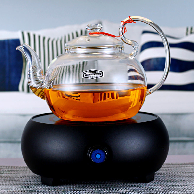 Boson pure glass boiling water cooking teapot flower tea raising raw tea home heat resistant full glass tea black crystal furnace suit