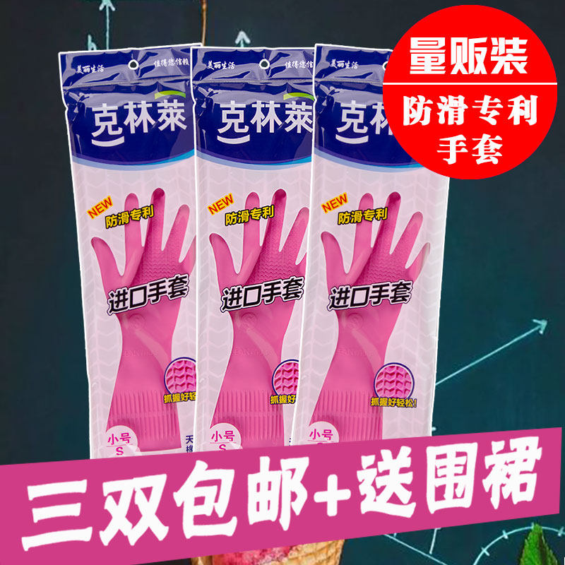 Clintley Rubber Gloves 3 Double Housework Gloves Small S dishwashing laundry kitchen clean and durable waterproof woman