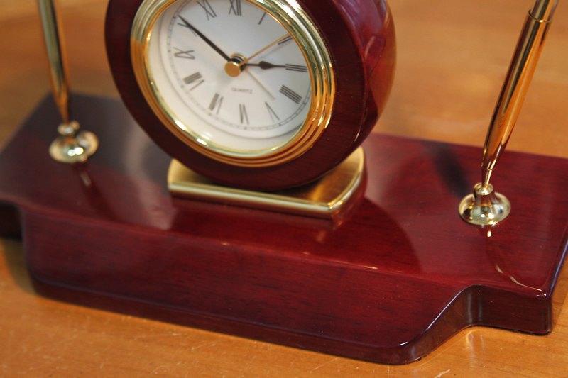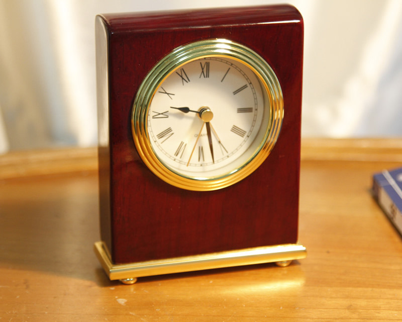 Small clock simple solid wood table clock clock alarm clock business clock with alarm copper base