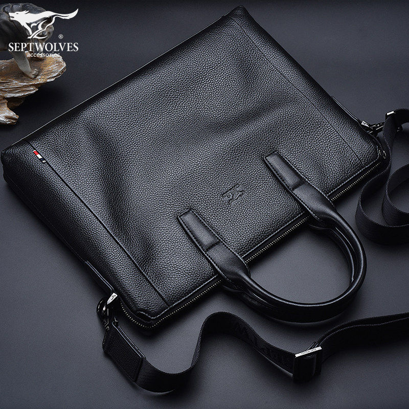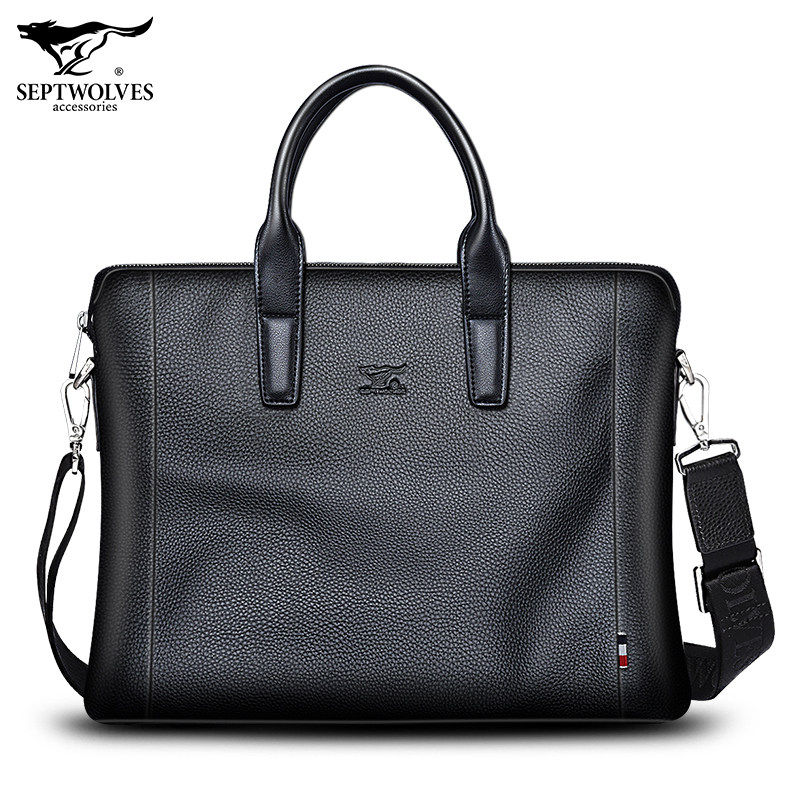 Septwolves seven wolves handbag men's bag Han version cow leather shoulder bag men's E318209-01AA1