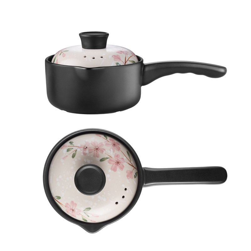 Han Style Ceramic Milk Pan Hand-painted Cherry Blossom heat-resistant casserole baby Deputy food pan Single handle not stained with pan small sand pan resistant to high temperature