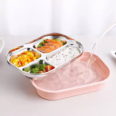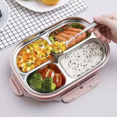 First grade elementary school students children's bento lunch box Portable girl heart stainless steel cute small lunch plate multi-grid lunch box