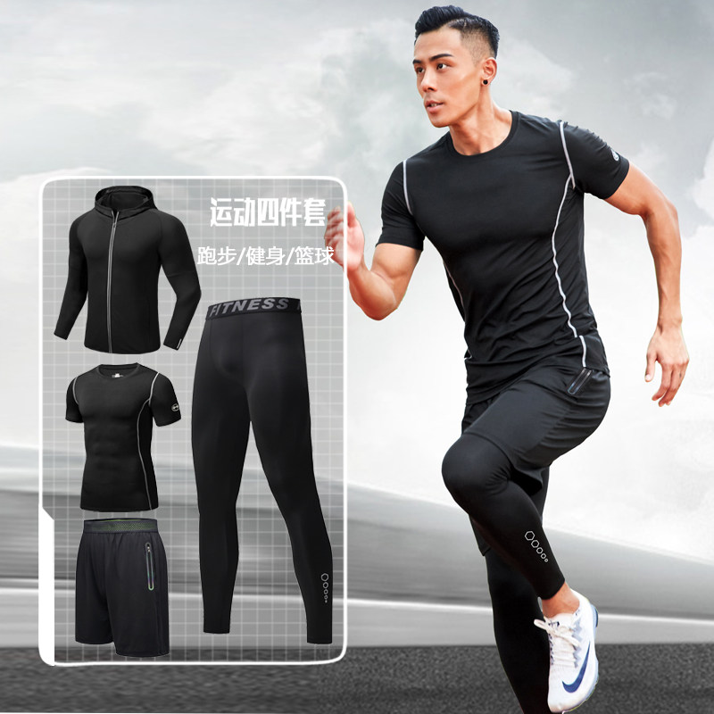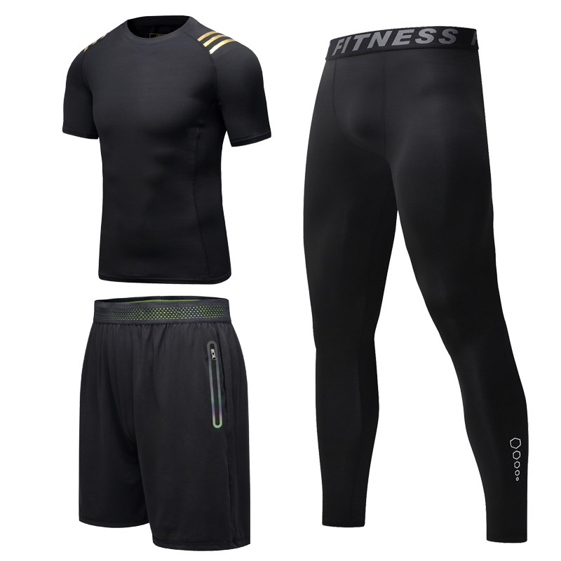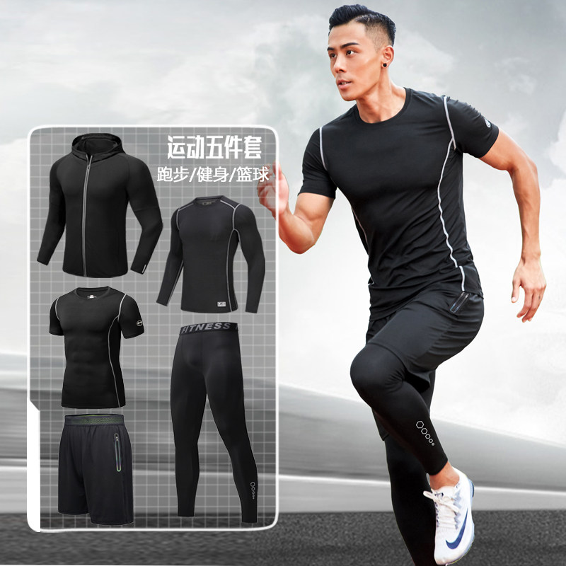 Ammar Deer Men Tight Clothing Sports Fitness Suit Basketball Training Wear Sweat Quick Dry T-shirt Running Five Sets