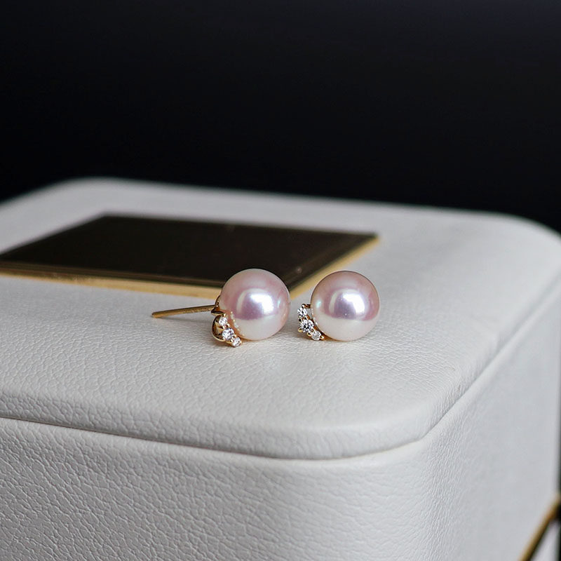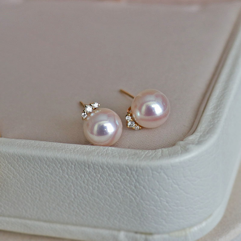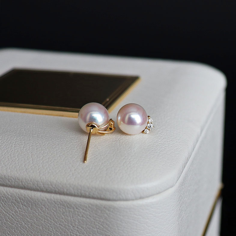 Three Diamonds 18K Gold Japan Imported Aurora Mirror Akoya Natural Seawater Pearl Earrings Earrings Eyelash Earrings