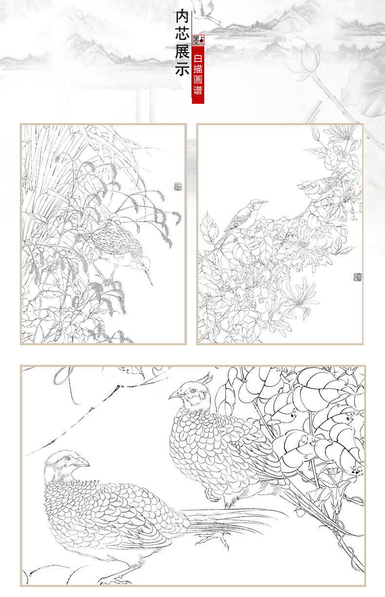 White sketch Genealogy Stroke White Sketch Flower Base Manuscript Beginners Flower Bird Painting Album ink dot Fine art Painting State painting introductory flower White sketching draft beginners' national painting tool