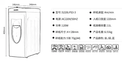 Del 9923 paper shredder floor side drawing office electric powder machine can break CD card Staples