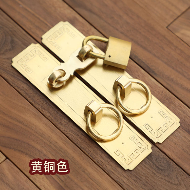 Lock latch pin Chinese antique pure copper door bolt buckle cabinet door handle door handle all copper old-fashioned wooden door padlock
