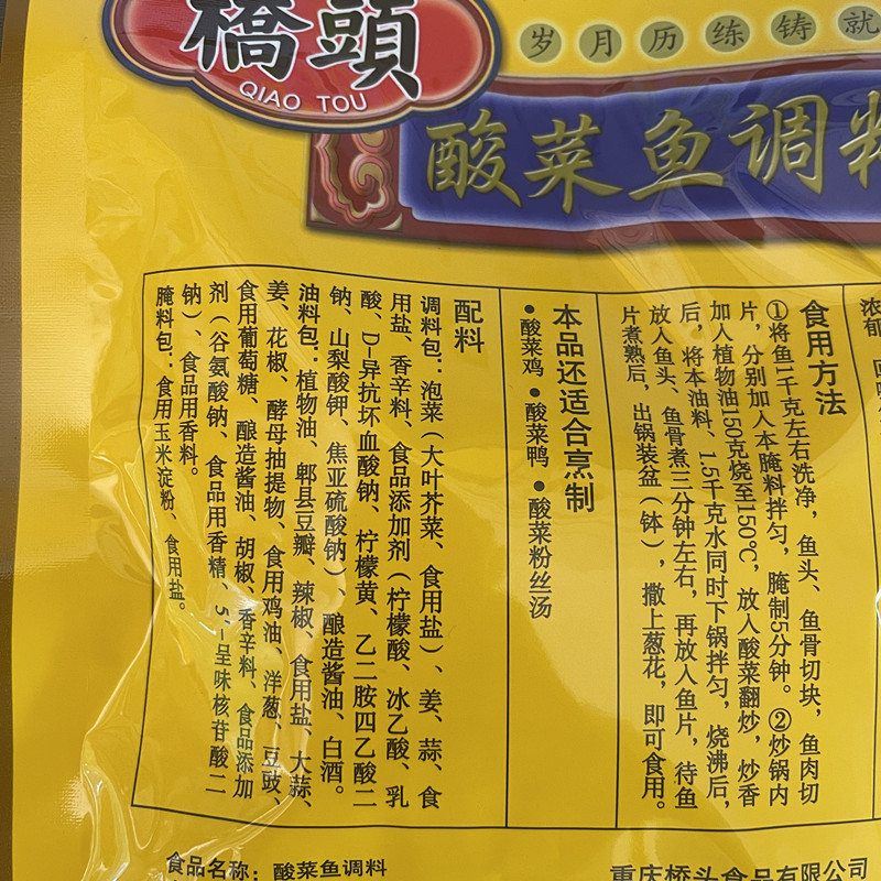 Chongqing Bridge Head Hemp Spicy Sour Vegetable Fish Seasoning Bag 300g * 5 Bag Stew Bottom stock Old altar Acid Sour Stock Home Fish Hotpot