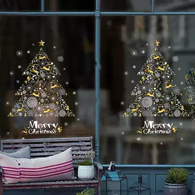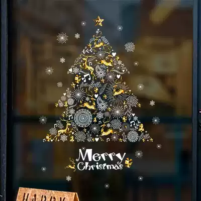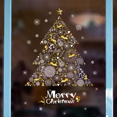 Christmas Day decoration supplies scene layout shop window stickers gold Christmas tree door stickers Glass stickers